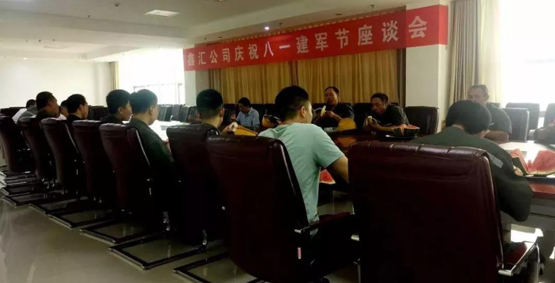為熱烈慶祝中國人民解放軍建軍91周年,7月31日上午,鑫匯公司召開慶祝“八一”建軍節座談會。保衛處處長白文軍代表公司與在職員工中的退伍軍人歡聚一堂,共同慶祝“八一”建軍節。